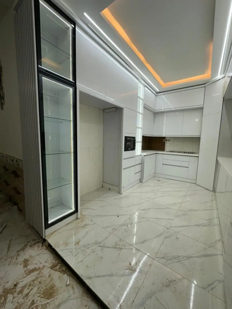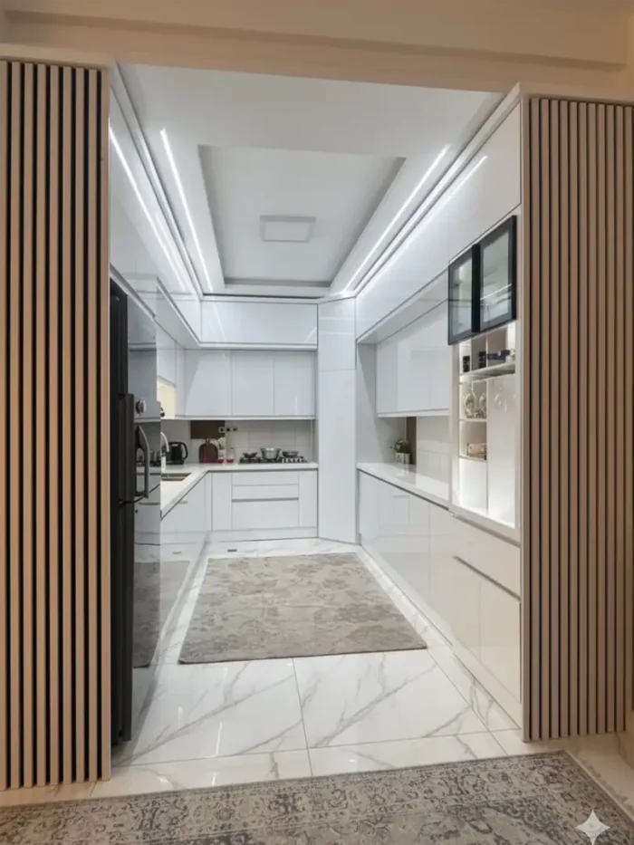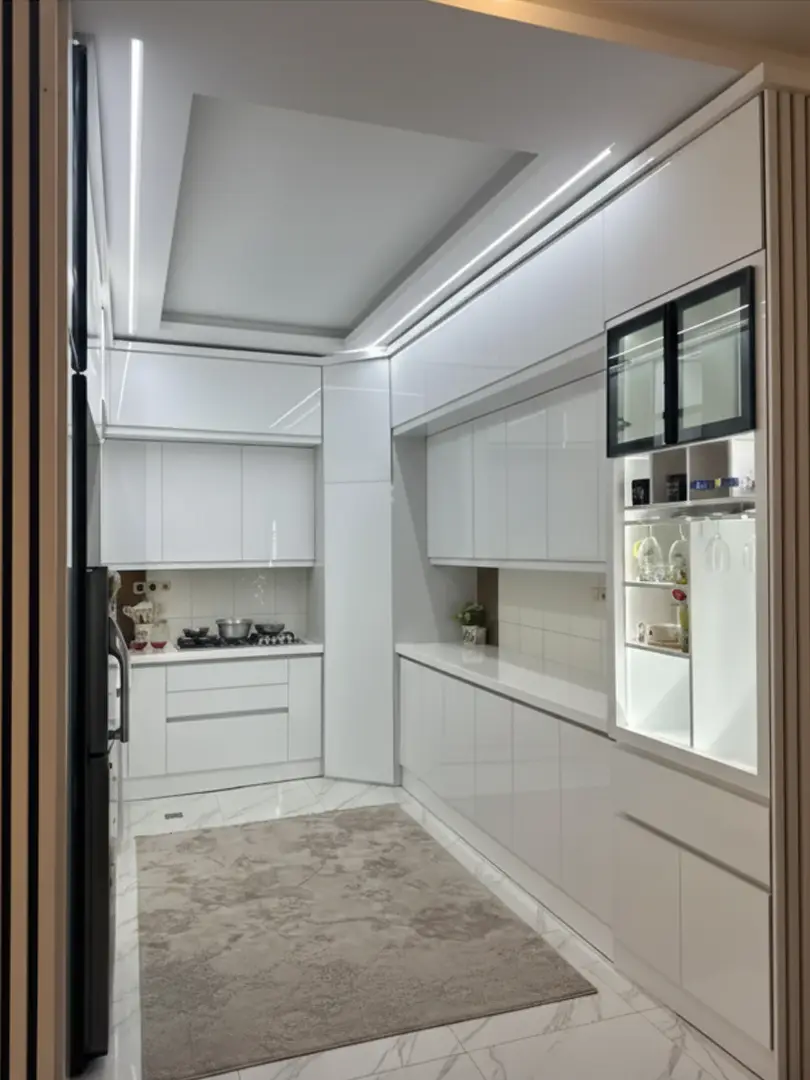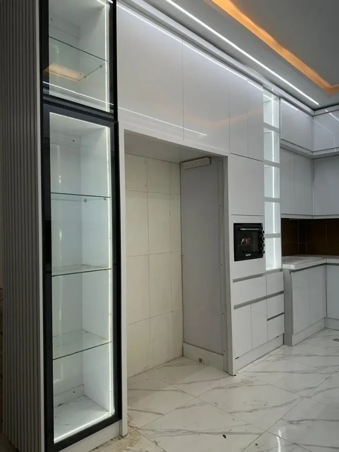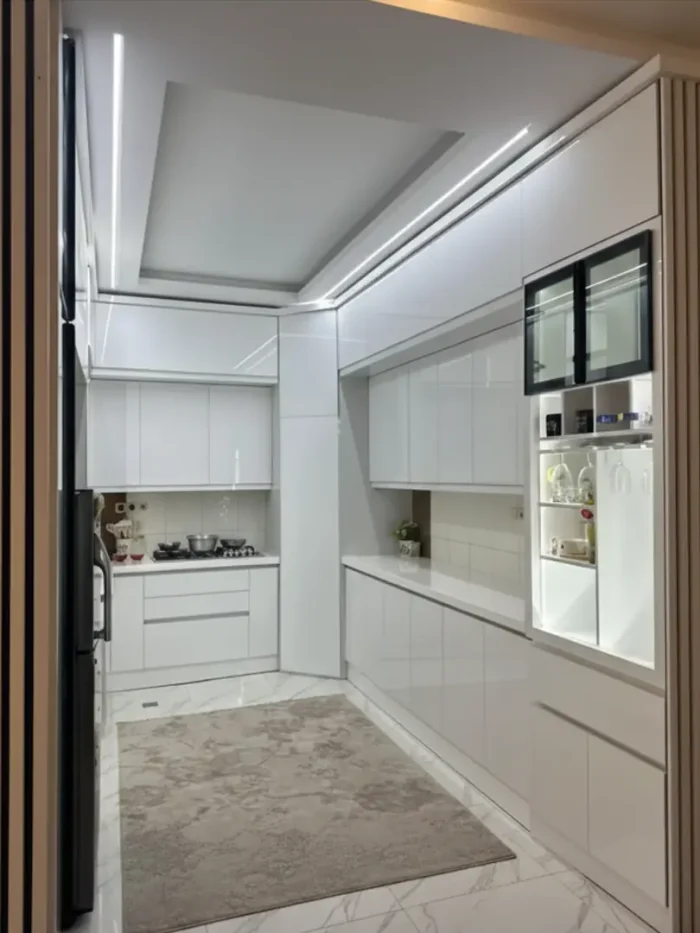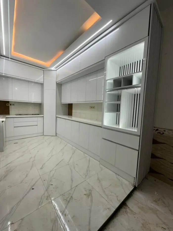 این طراحی خاص، ترکیبی از سادگی، درخشش و کارایی را در کنار هم ایجاد کرده و فضای آشپزخانه را به محیطی مدرن و دلنشین تبدیل کرده است.