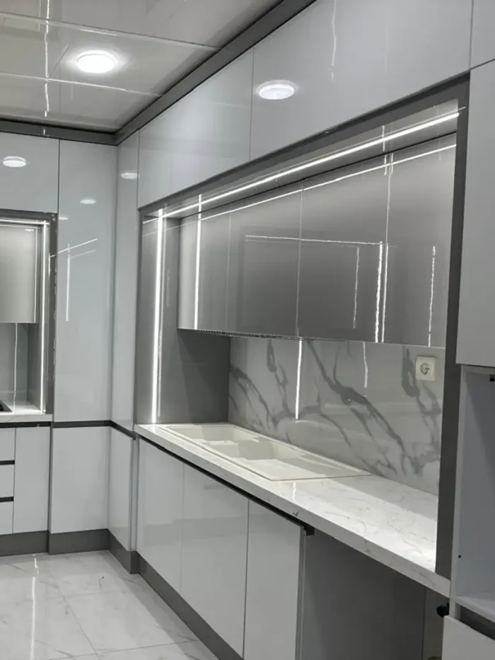 ساخت کابینت MDF سفید هایگلاس